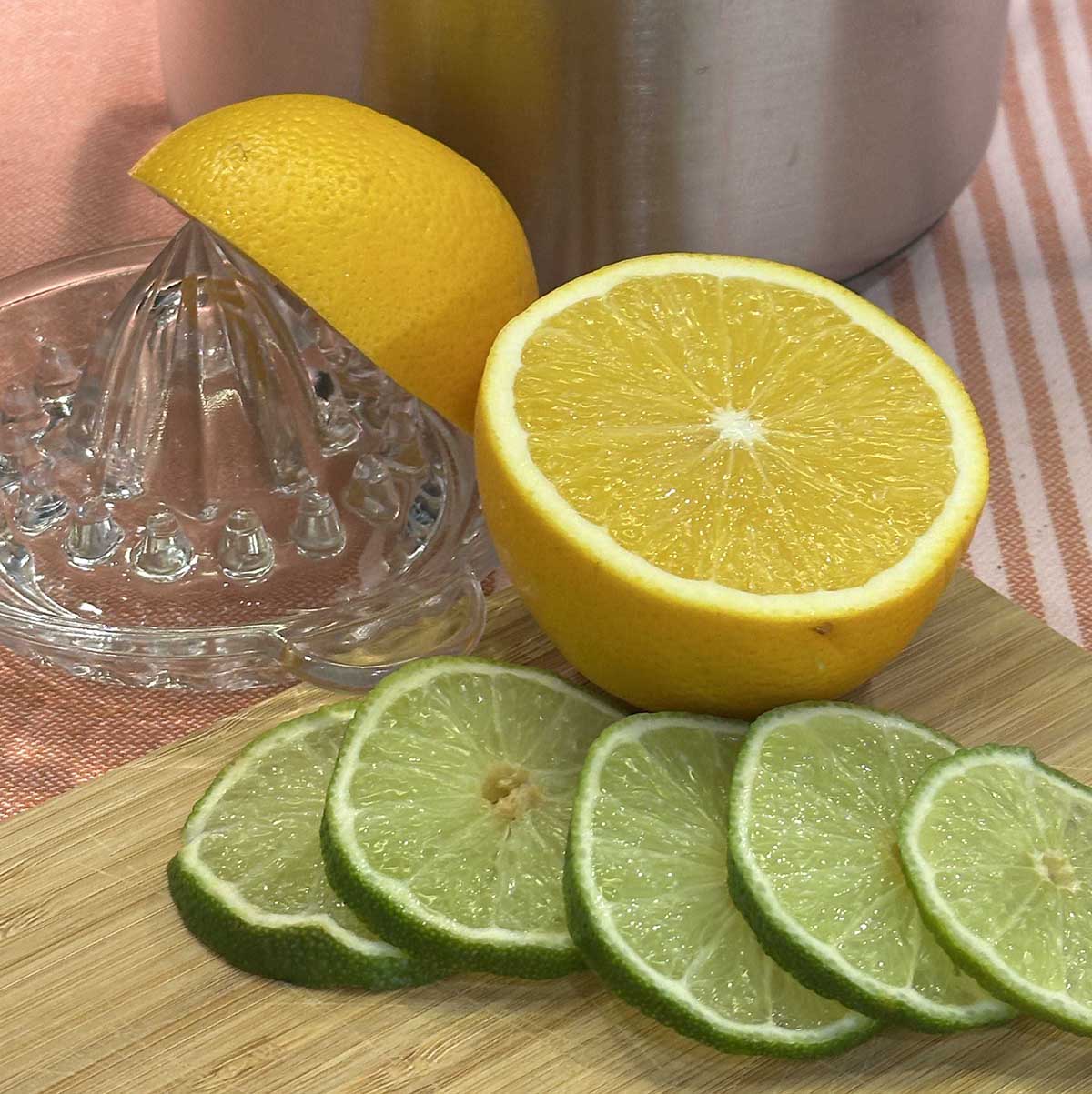 Limette heiß abwaschen und in dünne Scheiben schneiden.